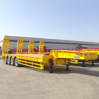 Tongya Vehicle offers 4 axle 100t low bed truck trailer designed to carry 30 tons, 40 tons, 60 tons, 80 toflatbed heavy duty trailertruck trailer dealers near mens, 100 tons, 120 tons, 150tons. It's main cargo platform is low, which ensures the stability of transpcommercial truck and trailerflatbed trailer dealers near meortation.